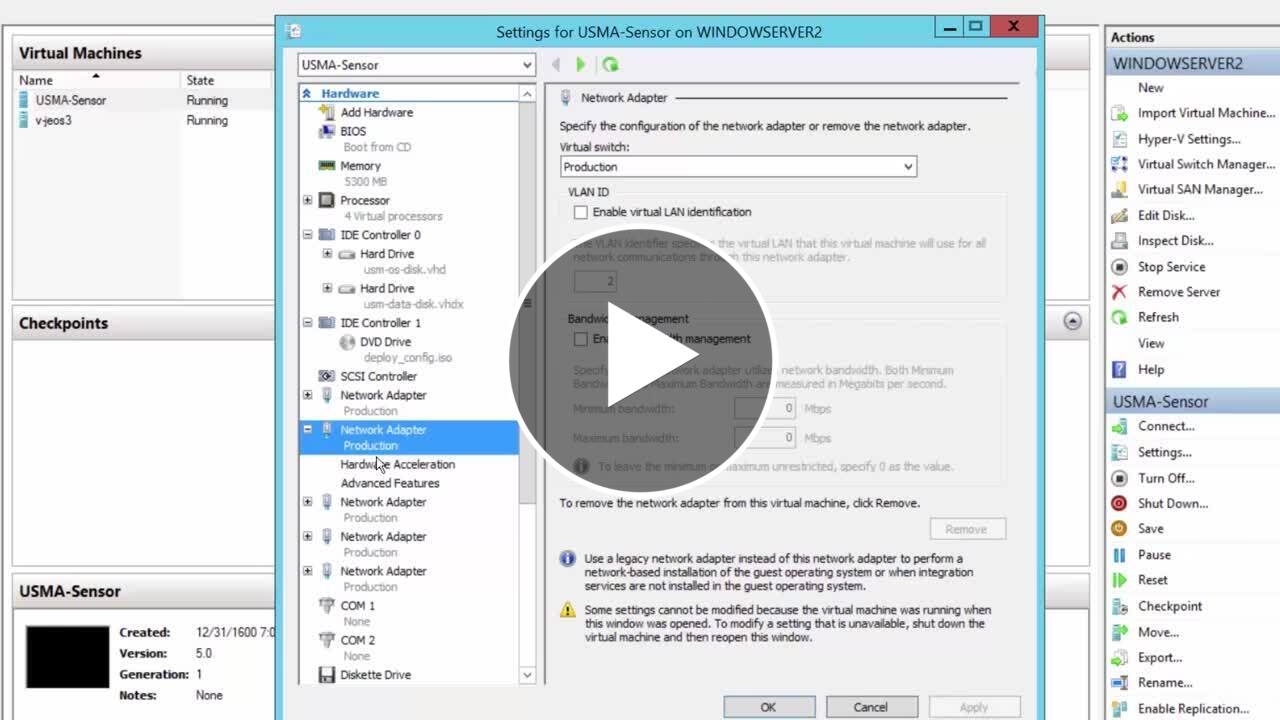 This video demonstrates the initial deployment and configuration of a Hyper-V sensor. It also demonstrates the sensor activation through the web UI.