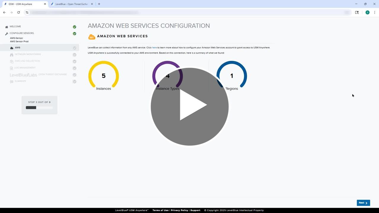 This video demonstrates the initial deployment and configuration of an AWS sensor. It also demonstrates the sensor activation through the web UI.